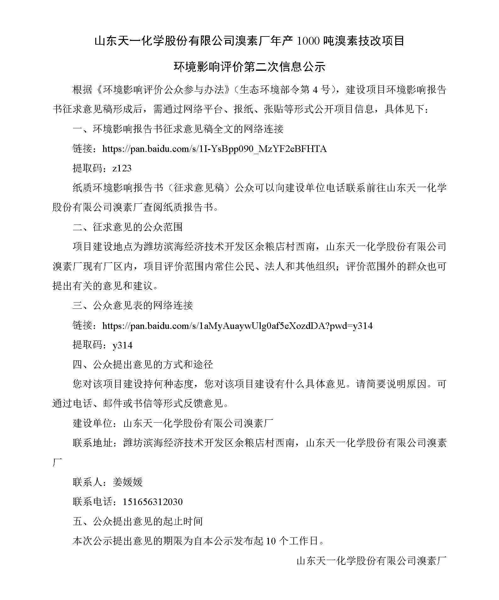 LEYU.COM溴素厂年产1000吨溴素技改项目 环境影响评价第二次信息公示
